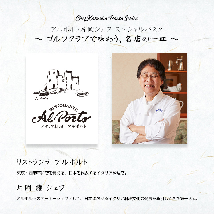 東京・西麻布の名店 アルポルト オーナーシェフ、片岡 護 氏監修による、期間限定のコラボパスタシリーズをスタートいたします。約1.5カ月ごとに新作へと切り替わるシリーズ形式で展開し、クラブで過ごすひとときに、上質な食の楽しみを添えることを目的としています。